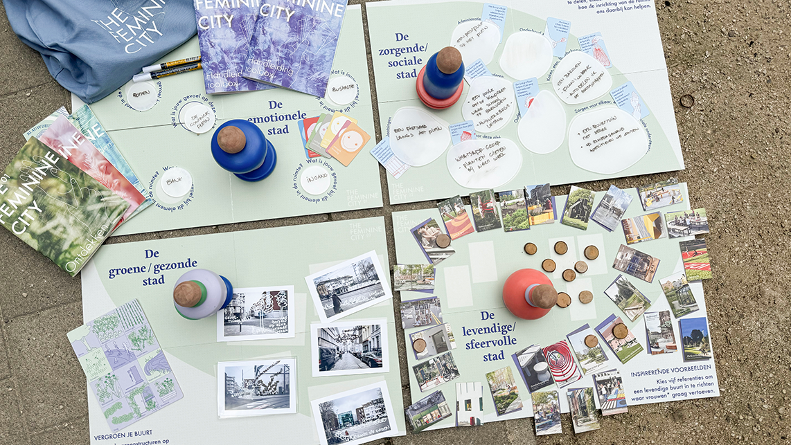Vanuit de vier lagen van de vrouwelijke stad – het zorgende/sociale, het groene/gezonde, het emotionele en het levendige/sfeervolle – ontwikkelden we een toolbox om in gesprek te gaan over hoe mensen een plek vandaag beleven en hoe die er in de toekomst anders kan uitzien.