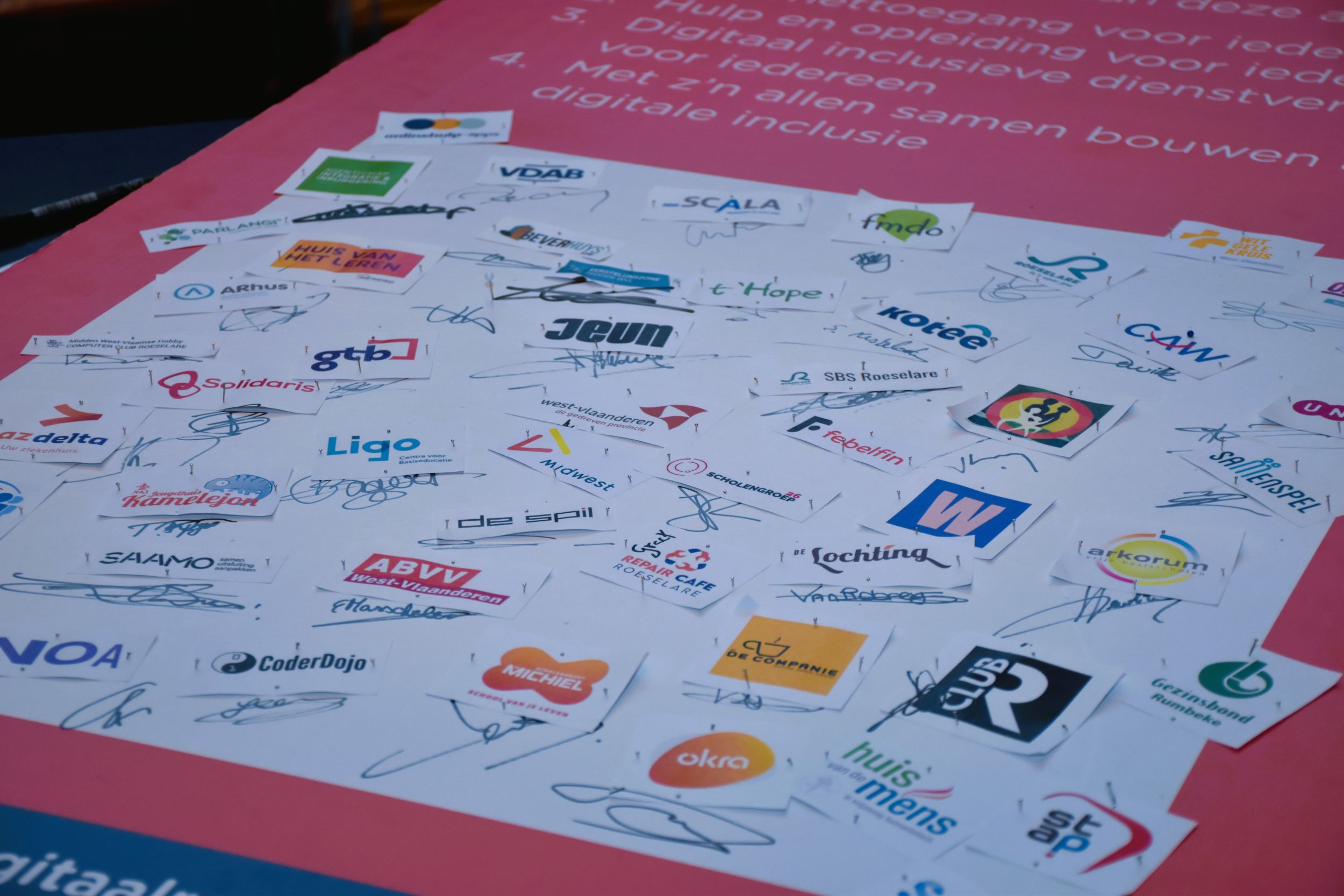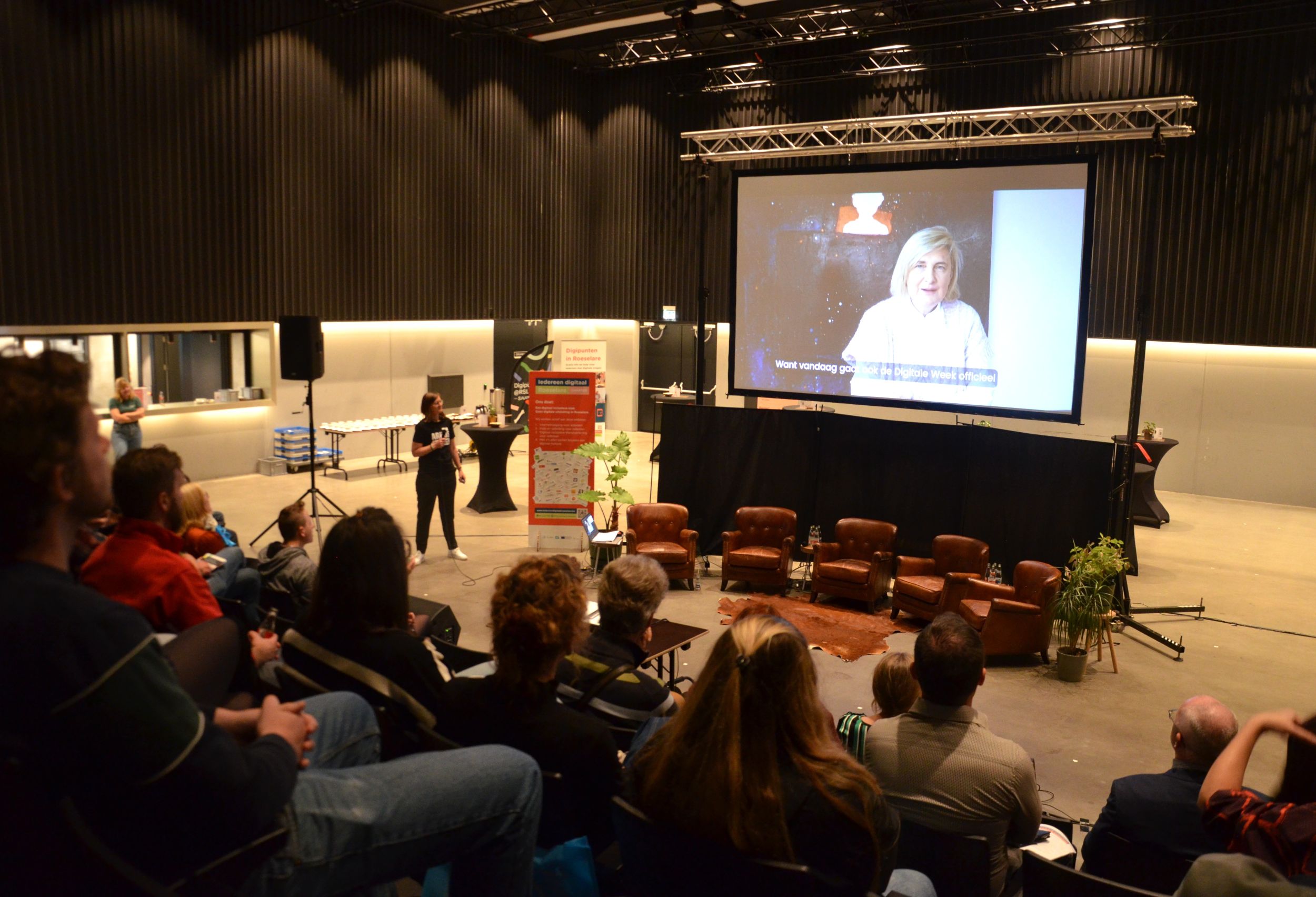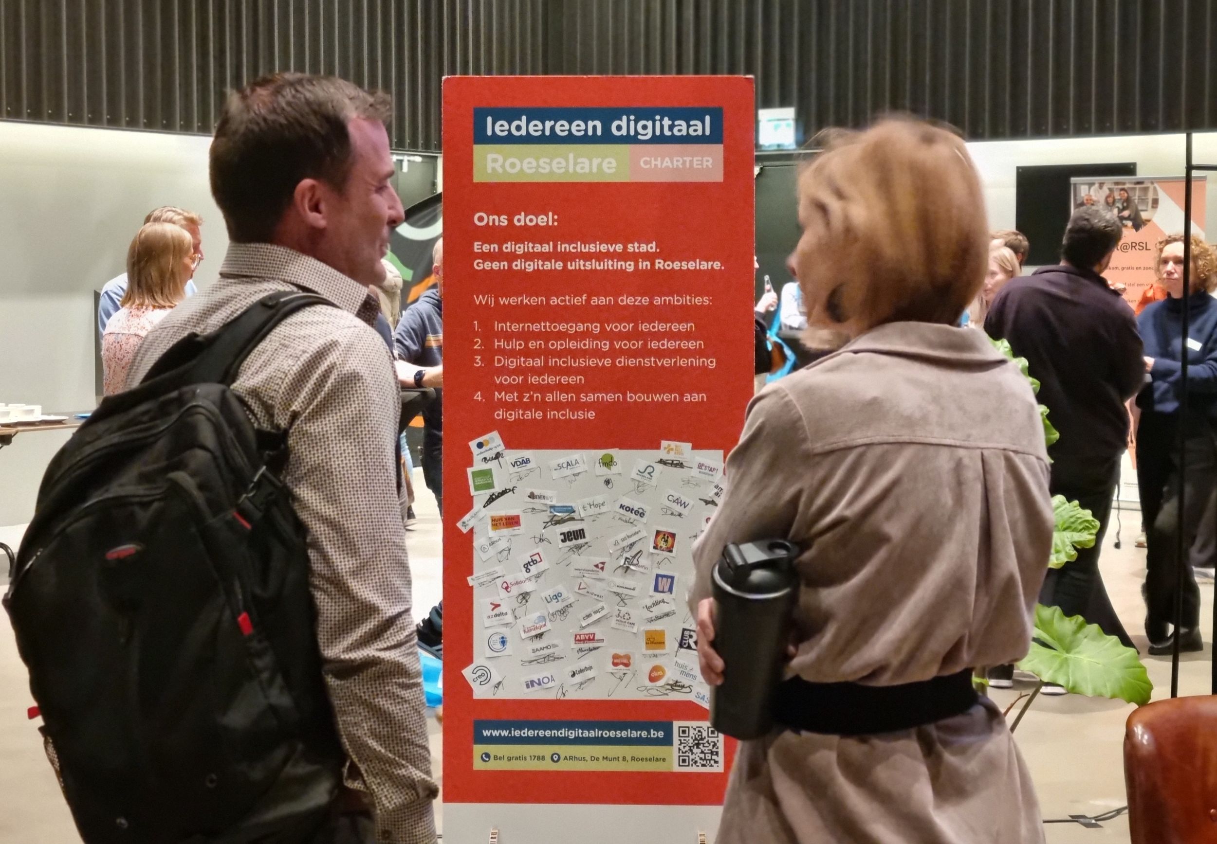 De namiddag begon met virtuele steun en complimenten van minister Hilde Crevits, collega Dimitri Lefere mocht onze gloednieuwe publicatie voorstellen en Sandra Vanneste vervolledigde de introductie met een update over de acties van Iedereen Digitaal Roeselare. 7 Nieuwe partners ondertekenden het charter voor een digitaal inclusief Roeselare.
