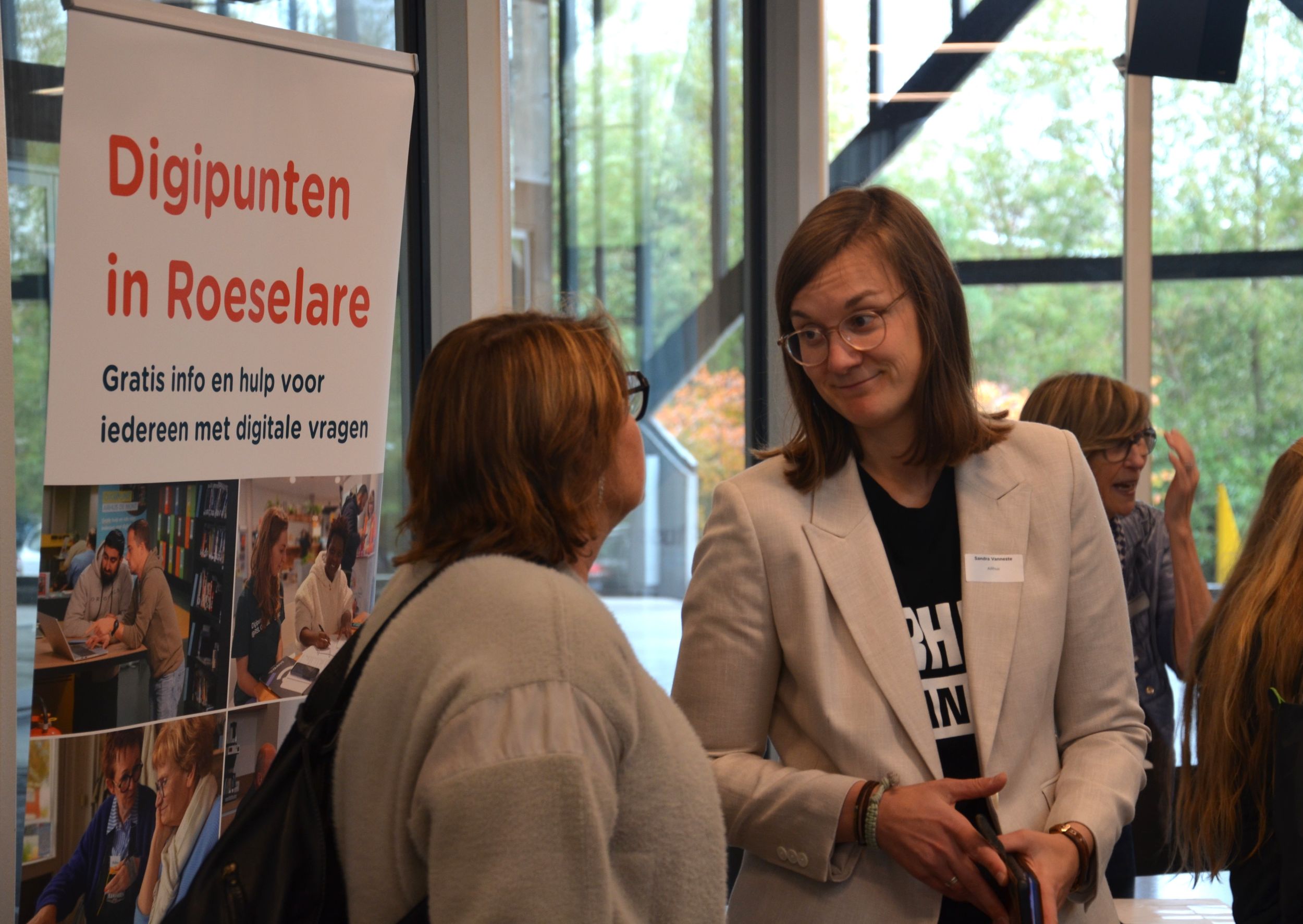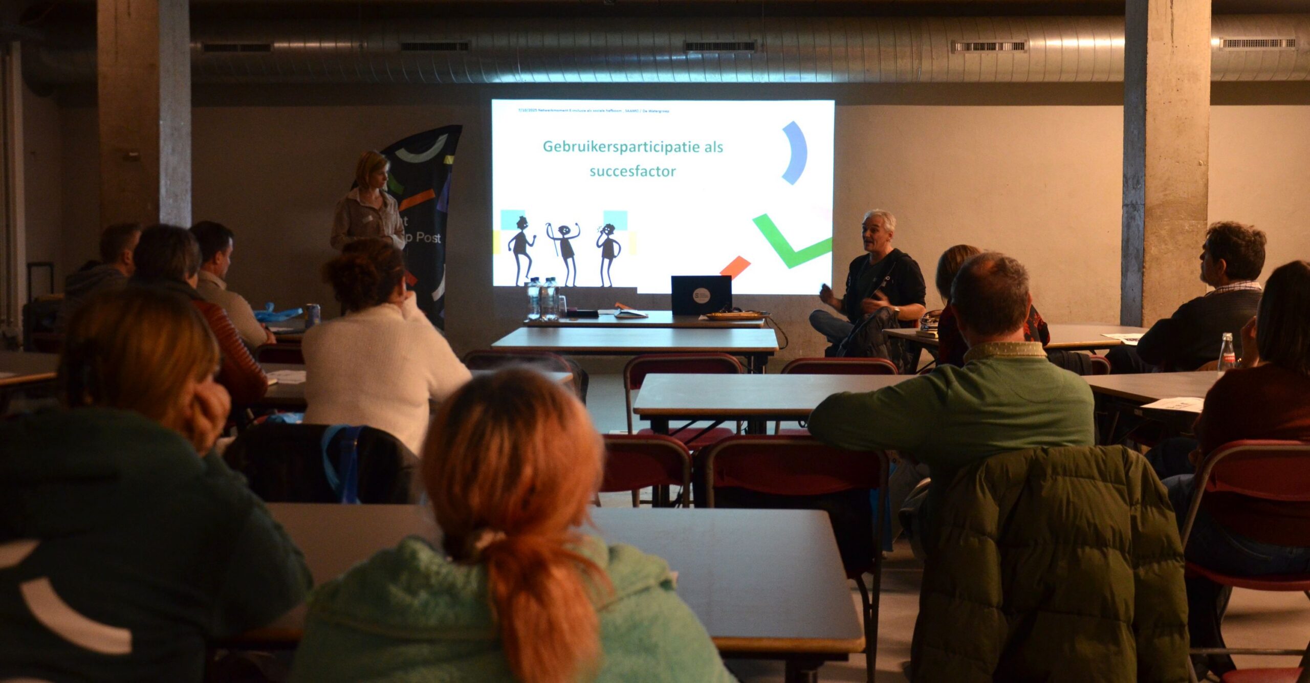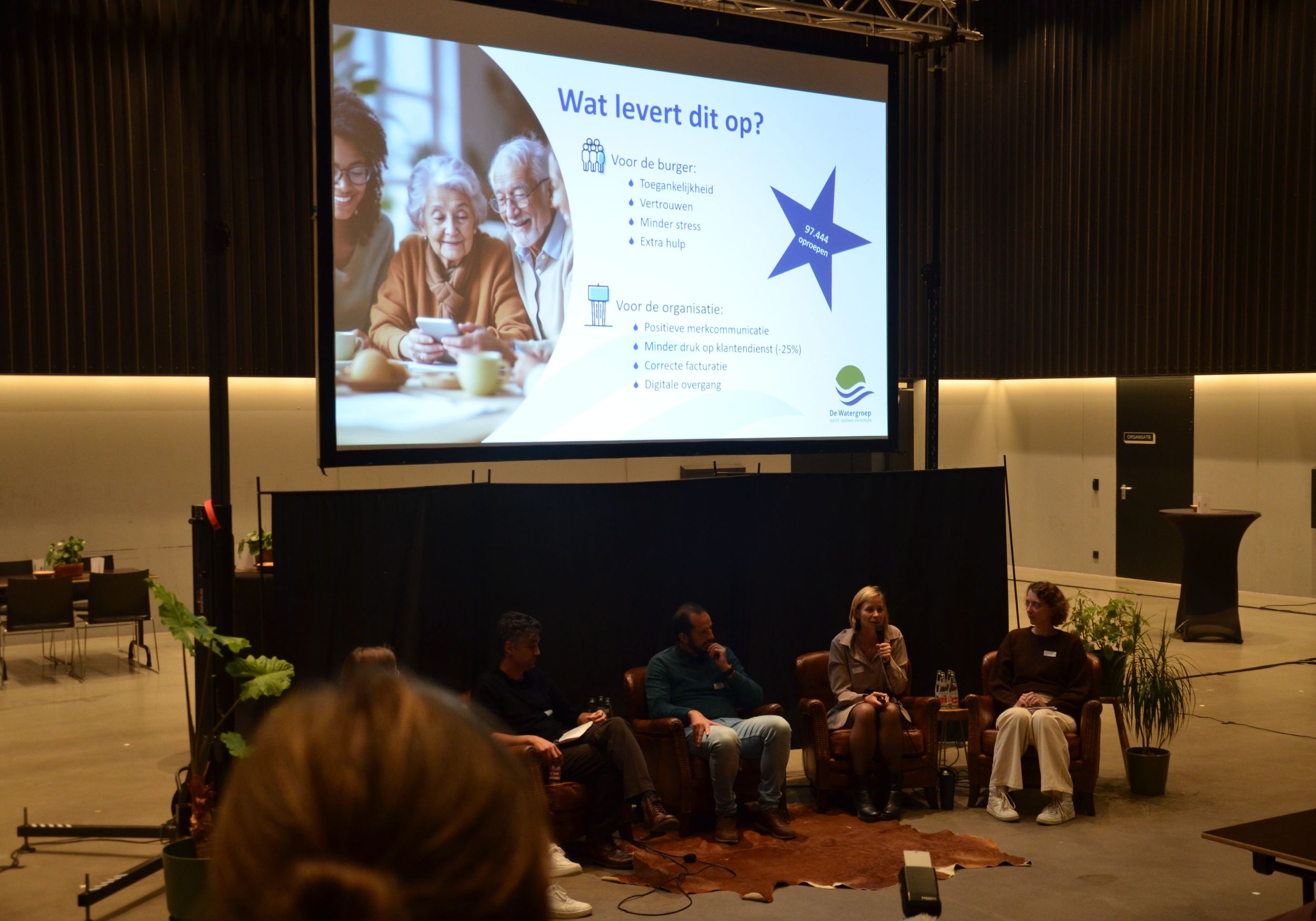 Dimi Lefere en Esther Matton namen de deelnemers mee in een interactieve sessie over de impact van een Digipunt als leerhub waar bezoekers meedoen aan inspraaktrajecten om de dienstverlening van een organisatie, zoals de Watergroep, te verbeteren.